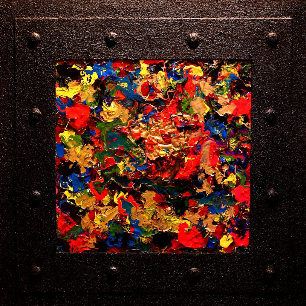acryl op plaat 50×50 cm – opengeplooide metalen kader 85×85 cm