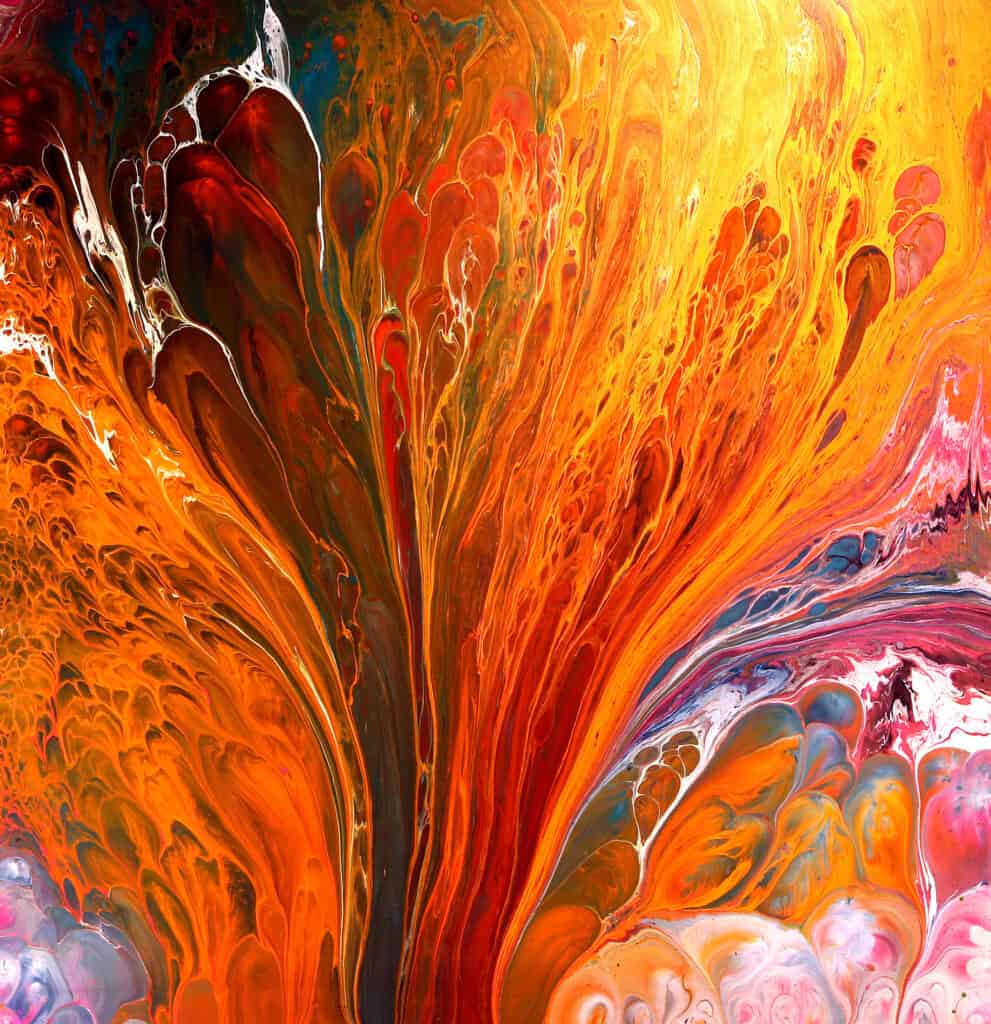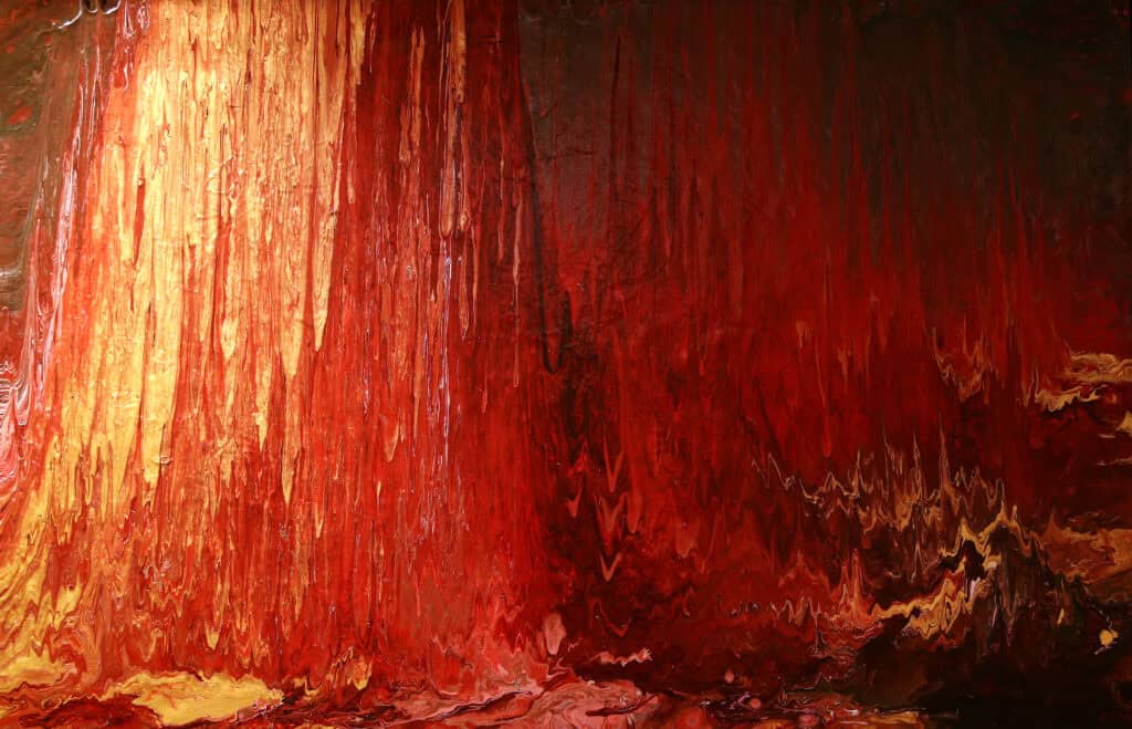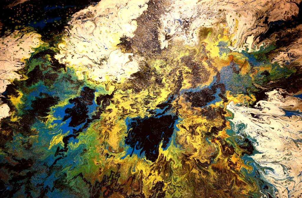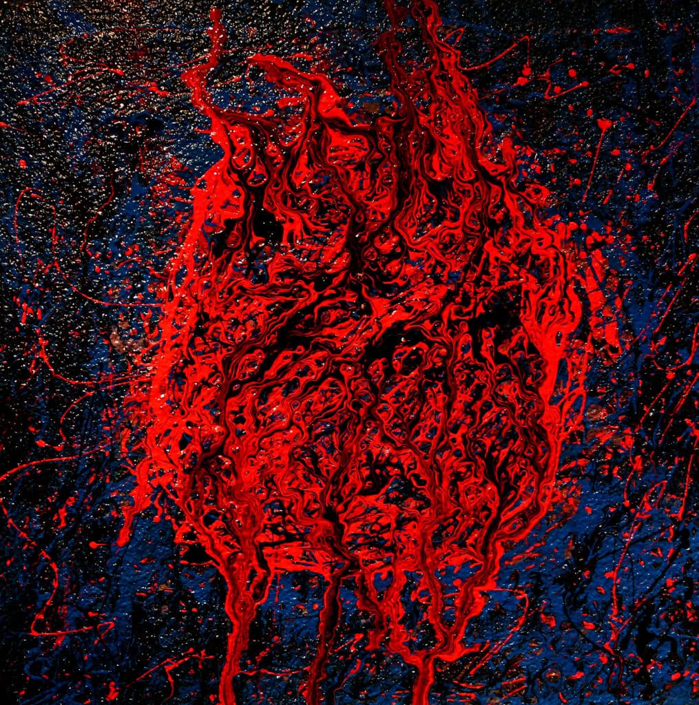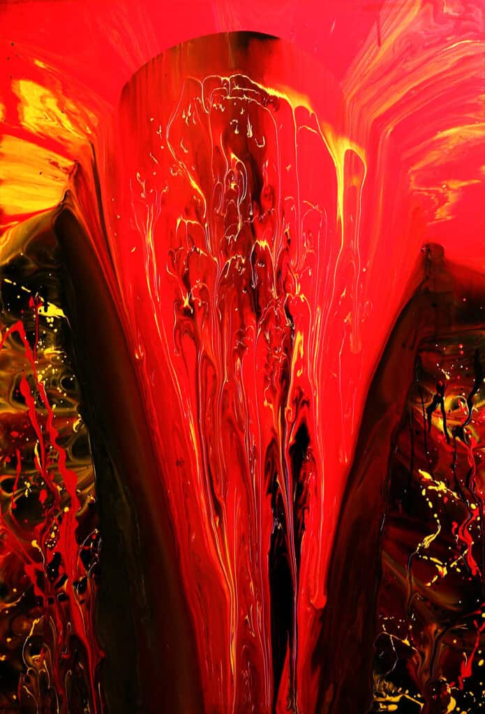 Het schilderwerk met giet- en drippingstechnieken van Angelo Modoti gaat gepaard met veel ‘Action’, want soms gaat hij er zelfs met lijf en leden tegenaan.