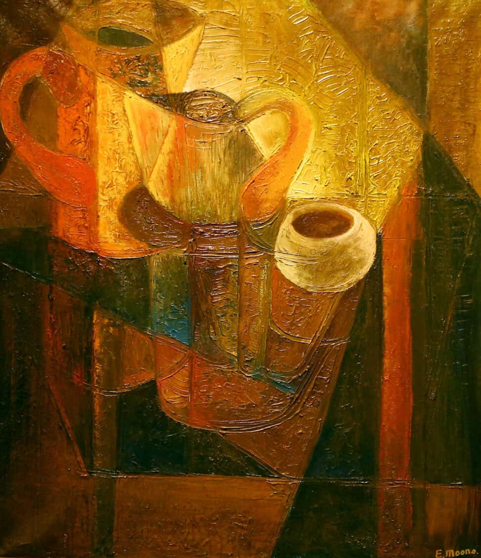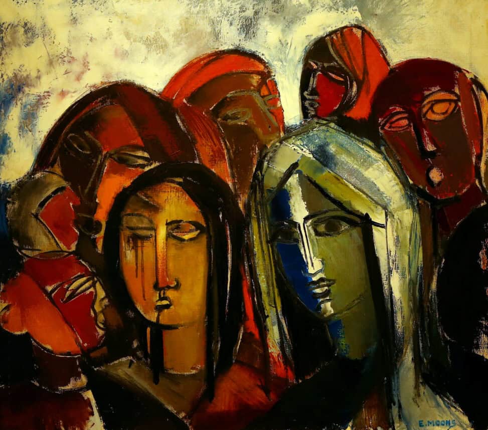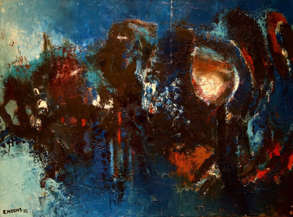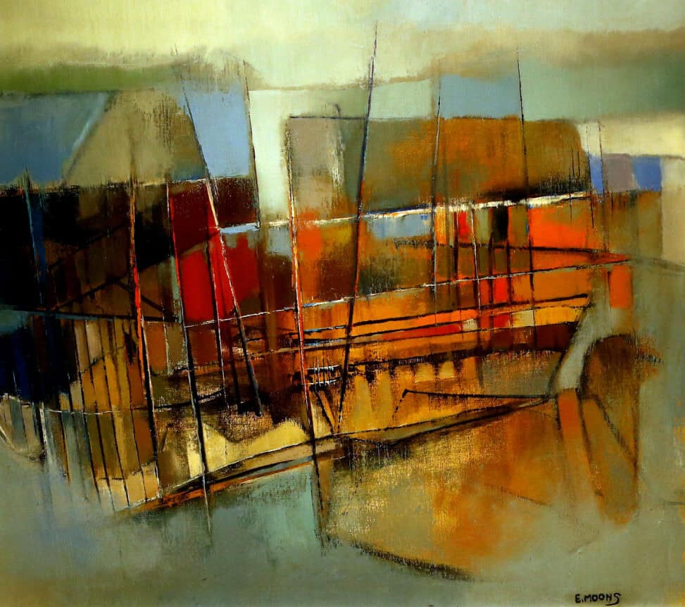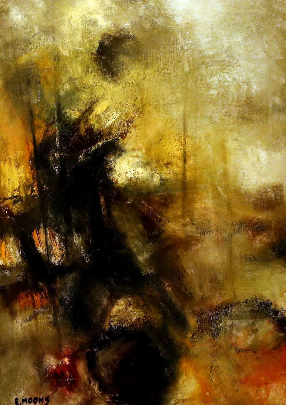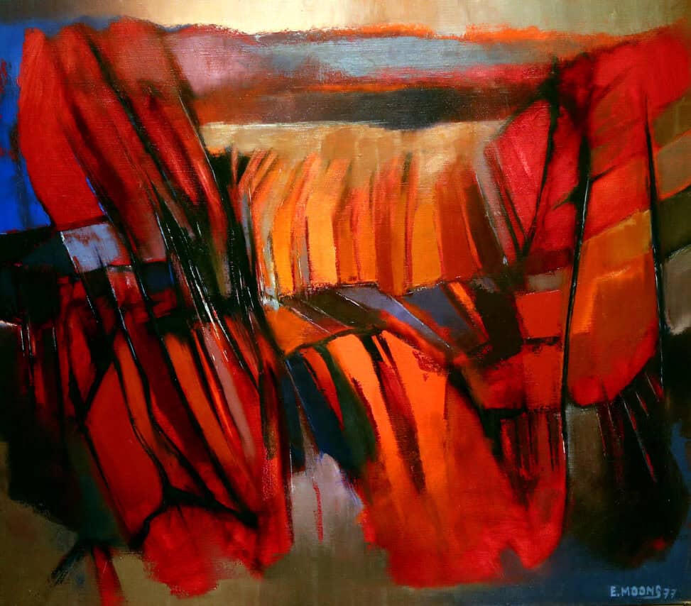 “Edward Moons was een gevoelig man. Hij neigde soms naar somberte. Dat uitte zich in donkere, zeg maar duistere werken. En dan wisselden ze weer af met frisse, kleurige, figuratieve schilderijen. Moons kon als geen ander landschappen, gebouwen en portretten vatten.” – Jan Van der Borght kunstverzamelaar