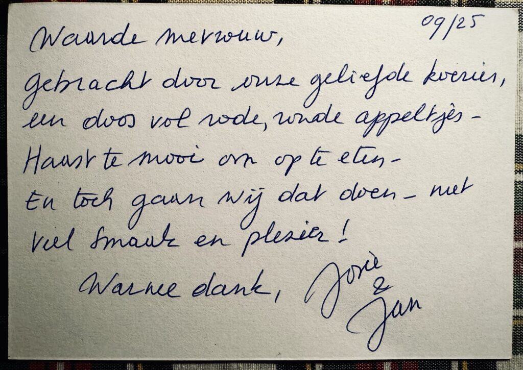 Hij komt, Hij komt… Sinterklaas zet op 6 december voet aan wal in Houthalen. Traditiegetouw etaleert de vooruitziende goedheilige op Mia’s bureautje appels geassocieerd met de man van aanzien en welstand ‘de notaris’. Dat zorgt niet voor de eerste keer voor een conflict tussen Mia en de man met de mijter. “Dat maakte mij zo kwaad. Daardoor heb ik in mijn hele leven nooit een appel willen eten.” – Mia (2025)