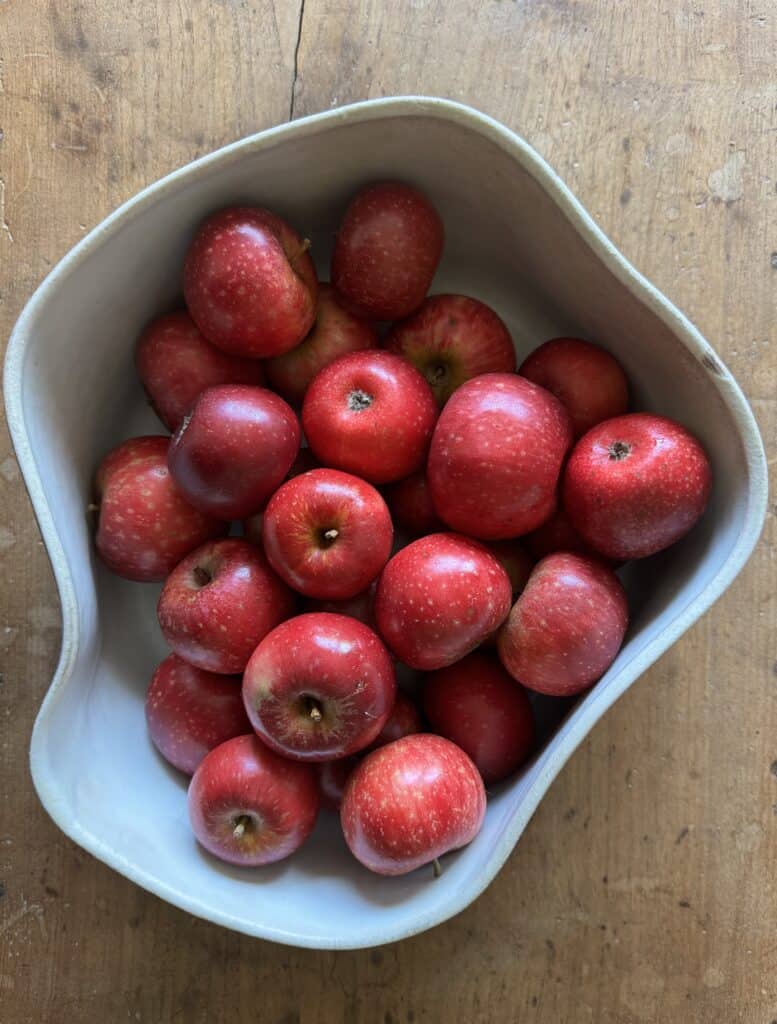 Mia oogst zelf notarisappels en draagt ze vervolgens rond aan dorpsbewoners.