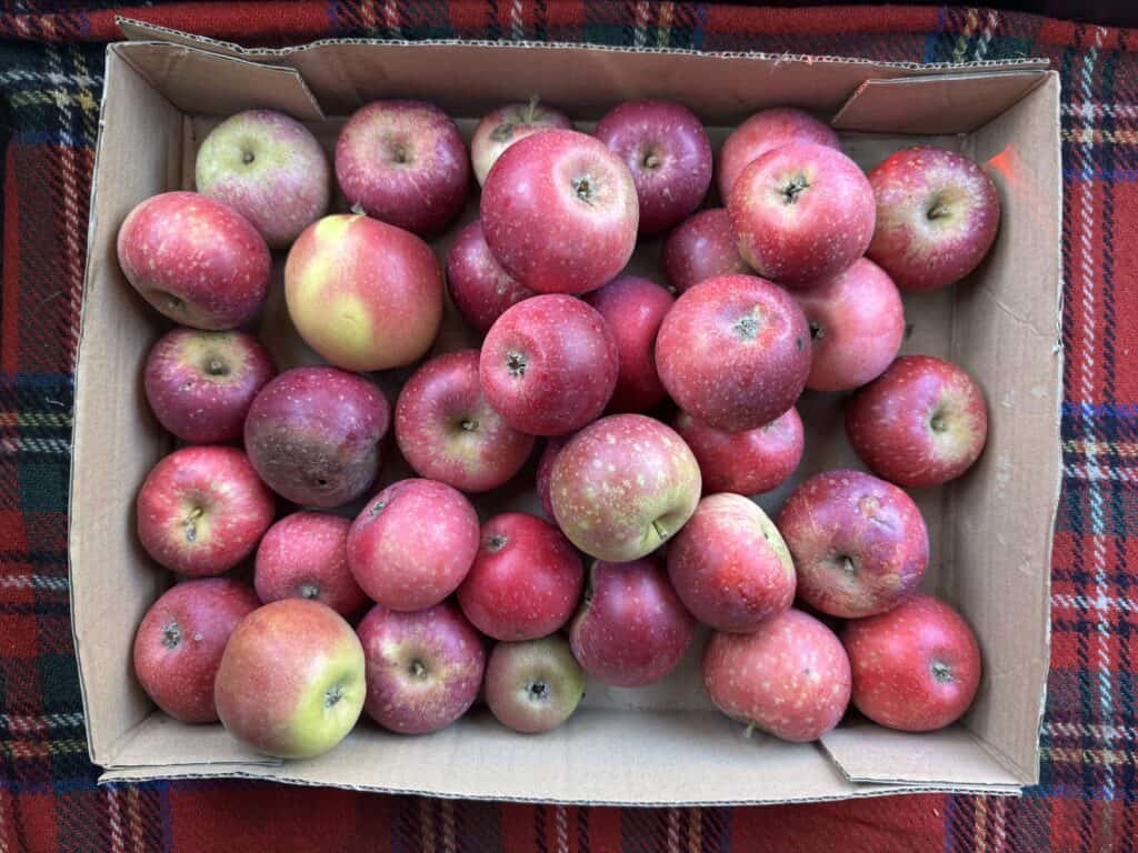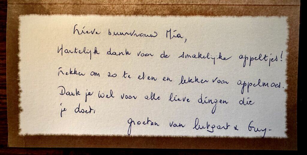 (2025) Mia oogst sterappels en deelt ze uit aan de buren in Wolfsdonk.